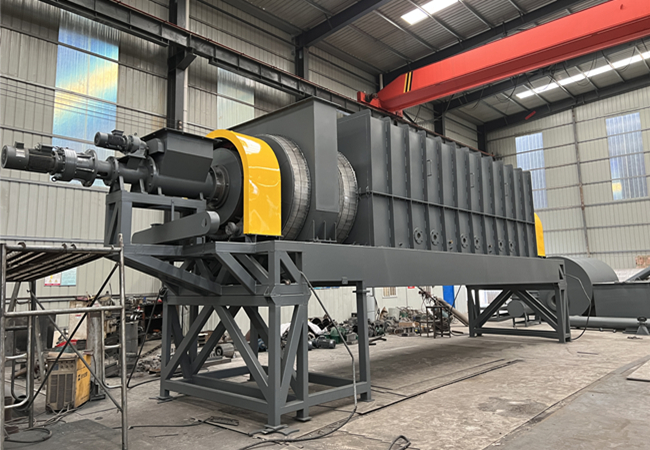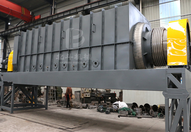 養(yǎng)殖規(guī)模較大養(yǎng)殖場(chǎng)每天產(chǎn)生的畜禽糞便量很大,糞污處置困難,糞便的能源化利用率很低。針對(duì)這一情況,鞏義市北斗機(jī)械自主研究開發(fā)的新型雞糞炭化機(jī),通過炭化、熱解技術(shù)對(duì)畜禽糞便進(jìn)行處理。由于畜禽糞便中含有較多水分,適合采用分級(jí)炭化系統(tǒng),包括:畜禽糞便烘干機(jī)、炭化機(jī)。